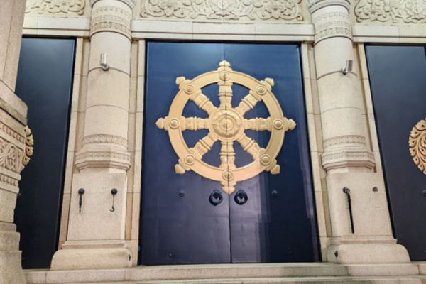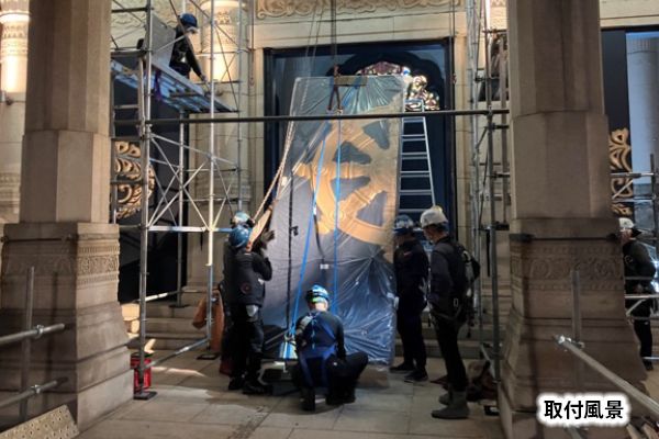 今月号では、正面鉄扉の現状をお伝えしたいと思います。2025年5月号にて鉄扉の取り外し風景を、2025年8月号にて工場での修理風景をお伝えさせていただきましたが、2025年9月に修理を終えた正面鉄扉が無事取り付けられました。今後、左右の鉄扉についても順次同様に取り外して修繕をしてまいります。鉄扉が取り外されている光景はなかなかないと思いますのでこの機会にぜひご覧いただけますと幸いです。